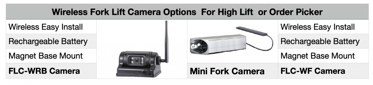 *Custom Forklift mounts for FCAM cameras are Not included.